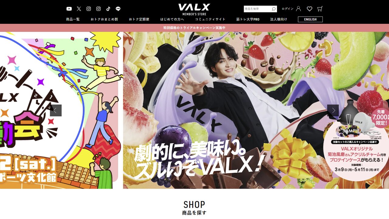 VALX株式会社(旧:株式会社レバレッジ)は、「前例のない熱狂を、しかける。」をミッションに、フィットネスブランド「VALX(バルクス)」を展開する企業です。現代の社会課題である「質的栄養失調」に向き合うため、プロテインやサプリメントを扱うD2C事業を中心に手掛けています。さらに、次世代型24時間フィットネスジム「VALXGYM」の運営など、業界をまたいだ課題解決に取り組むことで、フィットネス文化の発展に貢献しています。インフルエンサーを活用したプロモーションやサブスクモデルにより急成長を遂げ、勢いのあるグローバル企業を目指しています。