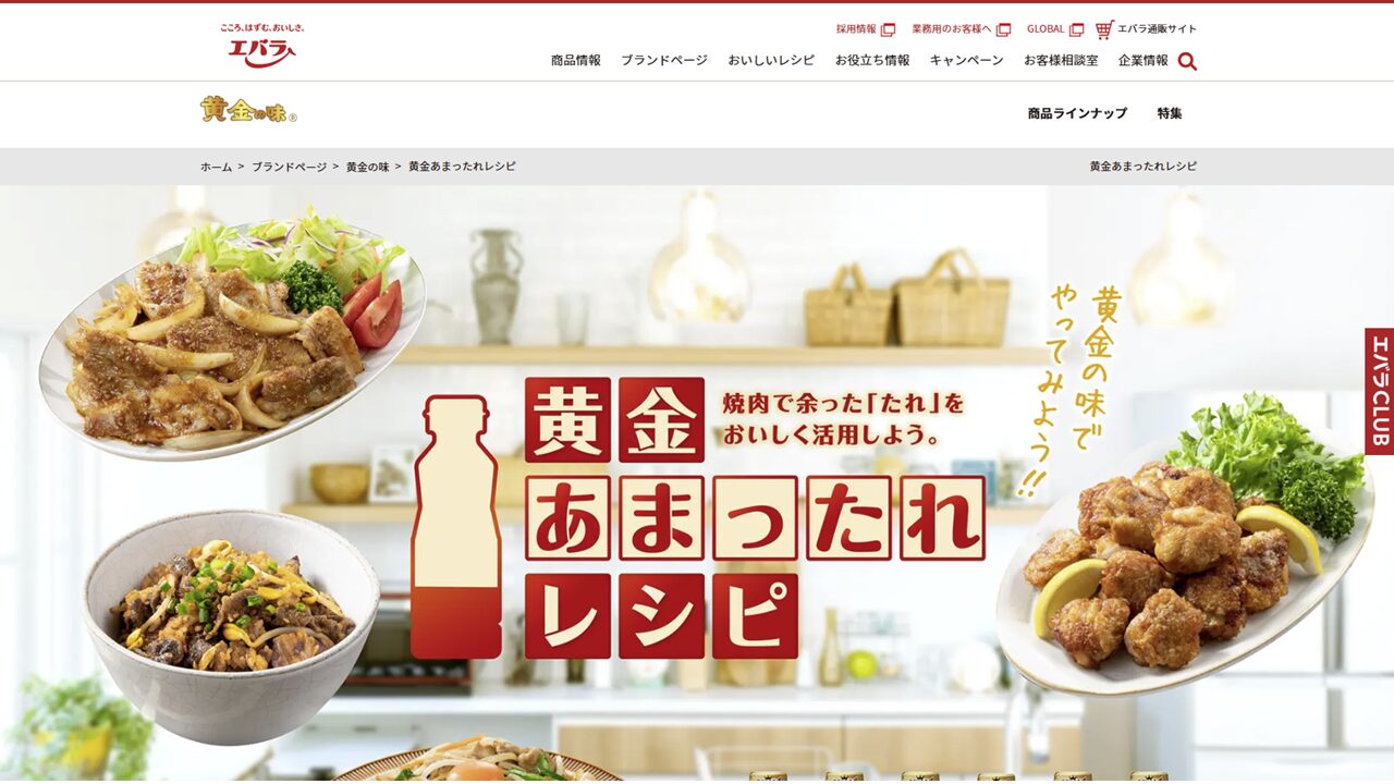 放送期間終了後もコンテンツとしての価値を維持するため、日常的に使用できるイメージを持たせる工夫を施しました。焼肉以外の「あまったれ」を活用した豚焼きや麻婆豆腐など、多様なレシピを写真一覧やアンカーリンクでわかりやすく提示し、継続的なサイト訪問を促す構成を実現させています。